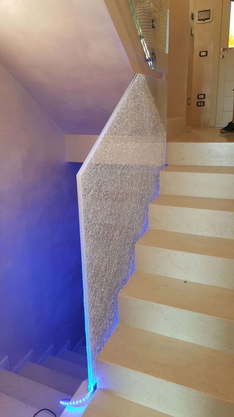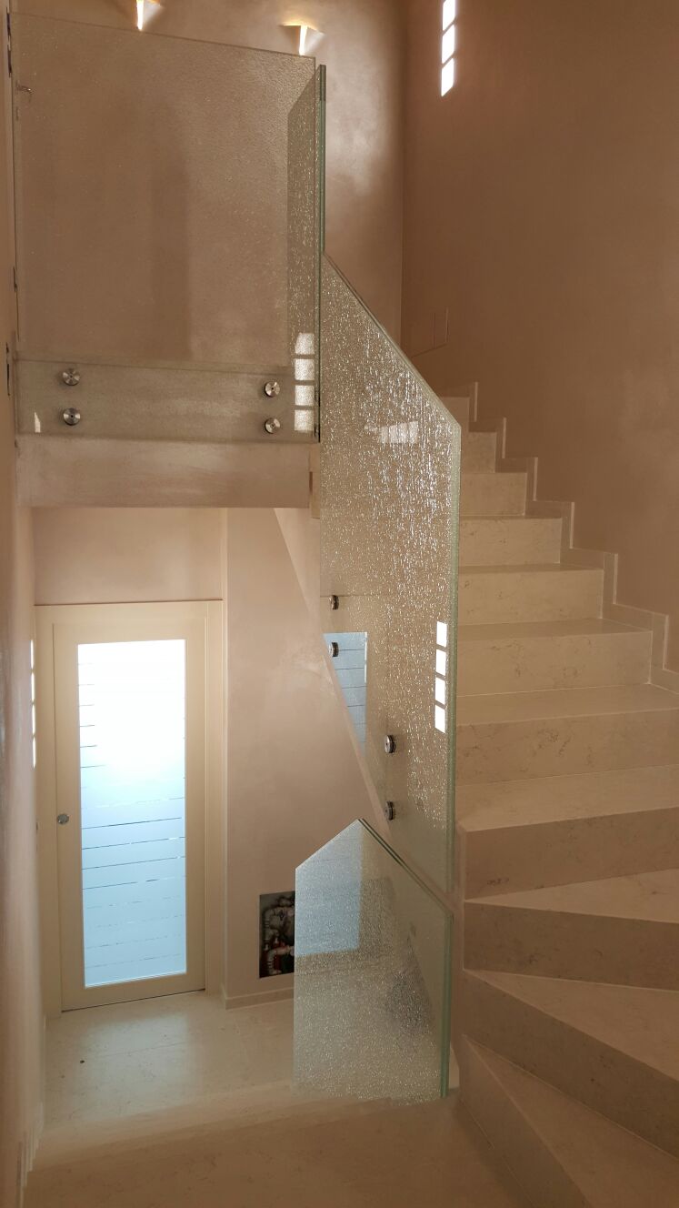 Realizzare ringhiere e parapetti particolari in vetro per esterni ed interni (che sia vetro temperato stratificato bianco latte o in vetro lacobel bianco temperato), è un lusso non solo esteticamente intrigante ma anche sorprendentemente sicuro: la chiusura in vetro è infatti totale, non essendoci fessure se non quelle necessarie a far scivolare via l'acqua dal balcone.