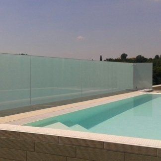 Nei laboratori Leali Vetri Service vengono lavorati vetri temperati e stratificati per delimitare la zona piscina sia con vetri trasparenti che con vetri bianco latte, ideali per salvaguardare la propria privacy. I parapetti in vetro per piscine presentano interessanti caratteristiche architettoniche: sono esteticamente accattivanti, sinonimo di ambienti eleganti ed esclusivi, rimandano a un'immagine di benessere e pulizia e sono ideali sia per uso privato che nei centri benessere e nelle strutture ricettive come navi da crociera, residence e hotel.